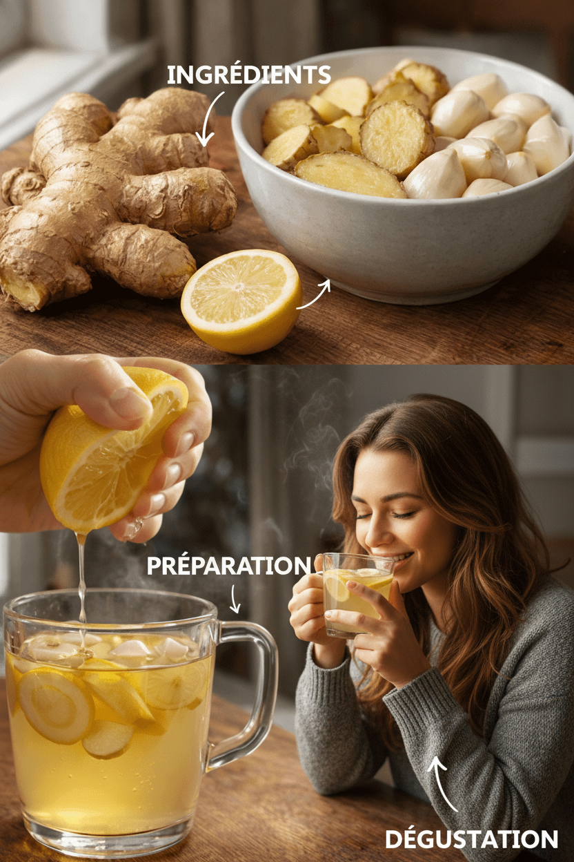 1. Infusion Matinale Ail-Gingembre (la plus courante)