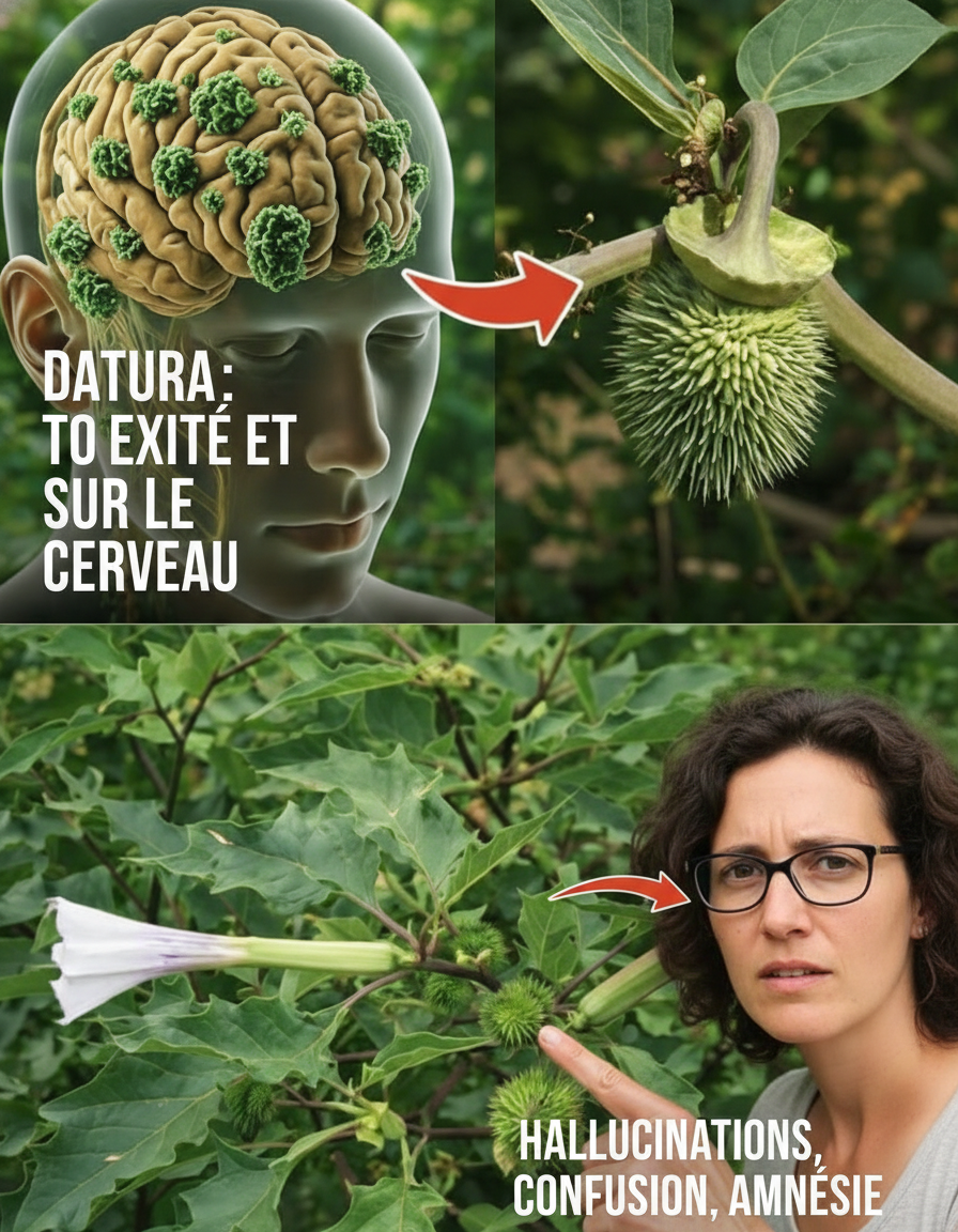 Le Datura stramonium, également connu sous les noms de stramoine, herbe aux démons ou pomme épineuse, est une plante annuelle reconnaissable à ses grandes fleurs en forme de trompette et à ses capsules épineuses contenant les graines. Elle prolifère rapidement dans les sols perturbés, les bords de route, les champs abandonnés, les jardins et même les zones urbaines. Cependant, un aspect fondamental est souvent négligé : cette plante n’est pas simplement irritante ou désagréable ; elle est extrêmement toxique dans toutes ses parties – feuilles, fleurs, tiges, graines et racines.