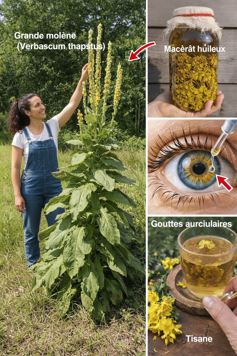 La Molène (Verbascum thapsus) est une plante herbacée élancée, reconnaissable à ses feuilles douces et veloutées, ainsi qu’à ses fleurs jaunes éclatantes. Depuis des siècles, cette plante est prisée dans les pratiques d’herboristerie traditionnelle à travers l’Europe, l’Asie et l’Amérique du Nord pour ses multiples vertus. Ce qui est particulièrement fascinant, c’est que si la molène est souvent consommée en tisanes ou infusée dans des huiles, certains adeptes du bien-être redécouvrent aujourd’hui une application topique singulière : l’utilisation des feuilles de molène directement sur la plante des pieds.