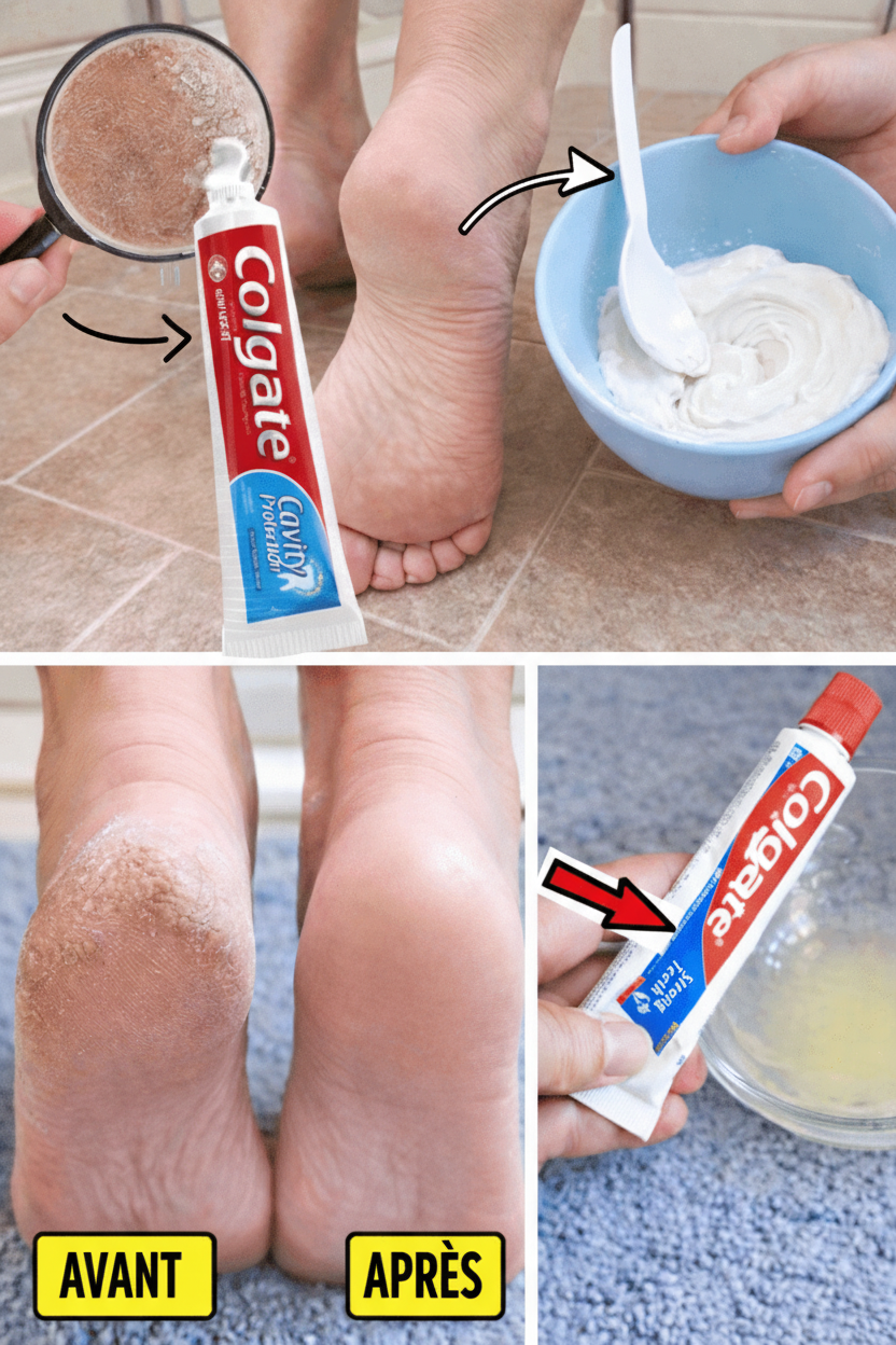 Vos talons sont-ils secs, fendillés, douloureux, ou arborent-ils une apparence rugueuse qui vous gêne ? Si les crèmes pour les pieds coûteuses, les bains de paraffine ou les pédicures n’offrent qu’un soulagement éphémère, préparez-vous à découvrir une astuce nocturne étonnamment simple et économique. Un remède maison, utilisant un simple tube de dentifrice Colgate classique (la variété blanche, non-gel, à la menthe), est en train de devenir l’une des solutions les plus partagées et les plus efficaces en 2025.