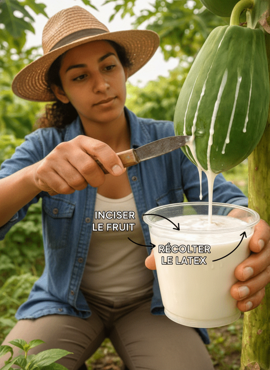 Ah, la papaye ! Ce fruit tropical juteux et sucré est un délice universel. Pourtant, peu de gens connaissent le véritable joyau caché qu’elle recèle : sa sève. Imaginez fendre une papaye encore verte et observer cette substance laiteuse, d’un blanc éclatant, s’écouler. Son parfum subtilement piquant évoque les remèdes ancestraux et les savoirs oubliés. Souvent, nous l’essuyons hâtivement pour ne garder que la chair mûre, ignorant que ce liquide visqueux détient une puissance insoupçonnée. Pourquoi, dans tant de cultures, notamment en Amérique latine, la papaye verte est-elle utilisée pour attendrir la viande ? Ou pourquoi certains la récoltent-ils avec tant de précaution ? Cette sève, véritable concentré d’enzymes comme la papaïne, pourrait offrir des bienfaits bien au-delà de ce que vous imaginez. Sa texture particulière et son odeur fraîche et végétale promettent des découvertes fascinantes. Mais attention : une utilisation inappropriée peut irriter la peau ou provoquer des désagréments. Souhaitez-vous percer ses mystères et apprendre à exploiter son potentiel en toute